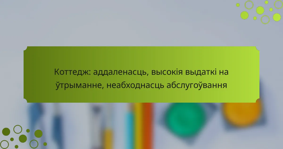 Коттеджы, хоць і прапануюць аддаленасць і спакой, могуць стаць крыніцай шэрагу праблем, звязаных з транспартам і высокімі выдаткамі на ўтрыманне. Эфектыўныя сістэмы ацяплення і ўсталёўка сонечных панэляў могуць дапамагчы знізіць фінансавыя выдаткі, але патрабуюць рэгулярнага абслугоўвання для падтрымання іх у добрым стане. Правільнае планаванне і выбар надзейных кампаній для абслугоўвання з’яўляюцца ключавымі фактарамі для забеспячэння камфорту і эканоміі.